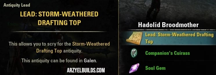 This Lead has a chance to drop from the Hadolid Broodmother Boss inside Ghost Haven Bay Public Dungeon in the High Isle zone. This is the Group Event Boss of the Dungeon and it will also reward you with one Skill Point the first time you kill it! The High Isle DLC is necessary to enter the Dungeon.